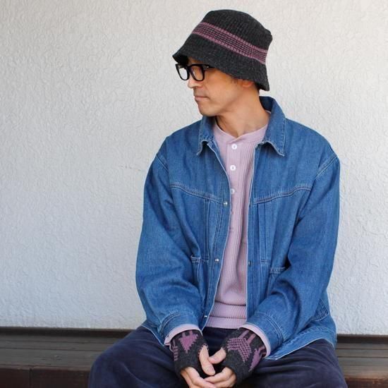 スッと被れる形状のバケットハット。